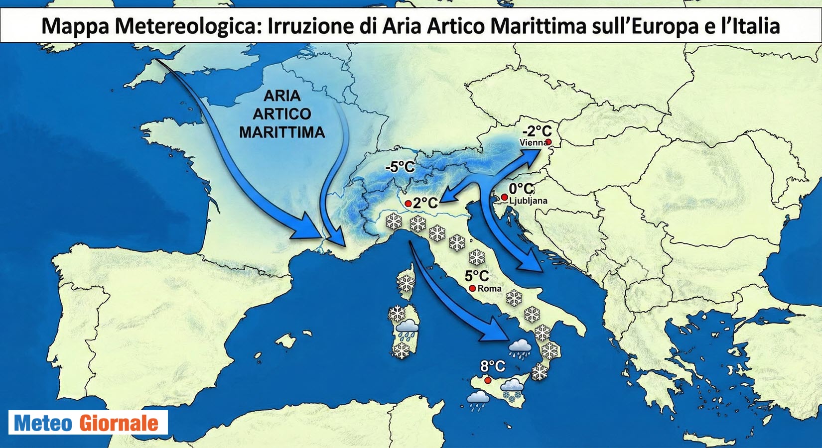 (TEMPOITALIA.IT) C’è un momento preciso, durante la stagione fredda, in cui l’atmosfera sembra cambiare umore all’improvviso. Non è quel gelo secco, immobile, che ti pietrifica le narici – quello arriva dalla Russia – ma qualcosa di più irrequieto, vibrante. Parliamo di una dinamica che trasforma il volto del Mediterraneo in poche ore. Diciamolo subito: quando i modelli matematici fiutano l’arrivo dell’Aria Artico Marittima, i meteorologi sanno che la noia sta per finire. È una configurazione che porta scompiglio, rovesci e, insomma, quel sapore di tempesta che rende l’Inverno degno di questo nome.