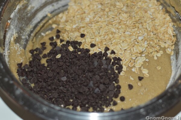 Aggiungete gocce di cioccolato e fiocchi d’avena.