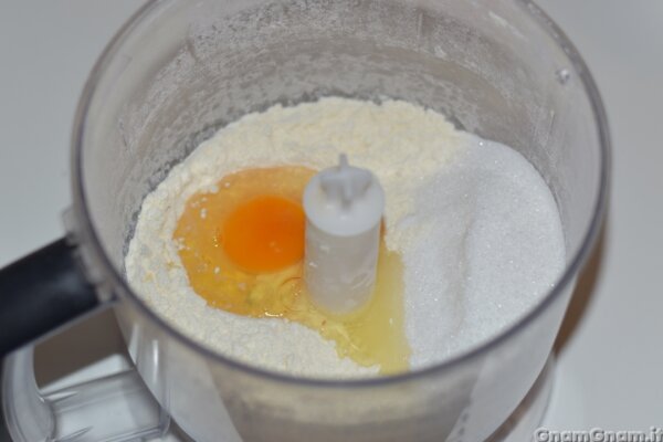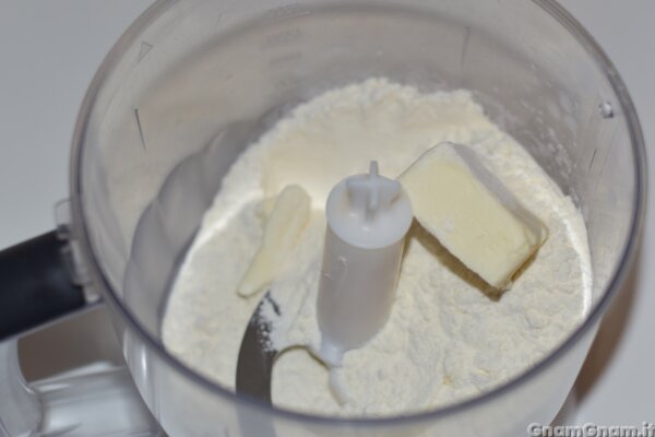 In un mixer mettete burro e farina e frullate fino ad ottenere un composto sabbioso.