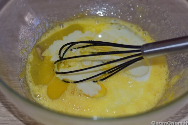 Aggiungete l’amido di mais, l’aroma alla vaniglia ed un pochino del latte previsto dalla ricetta se necessario, e mescolate.