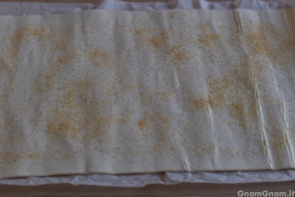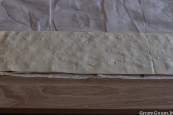 taglia a strisce larghe 3 cm circa e arrotola.