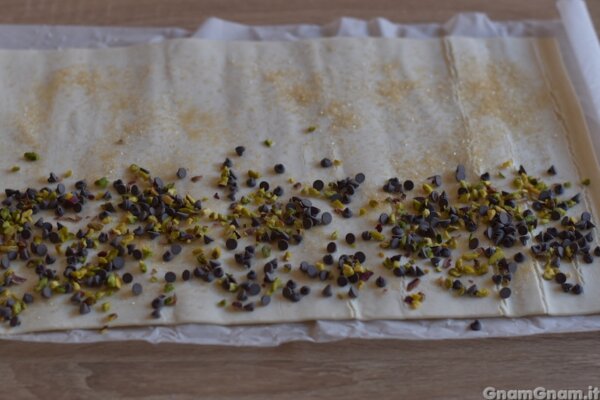 Su metà aggiungi cioccolato e pistacchio.