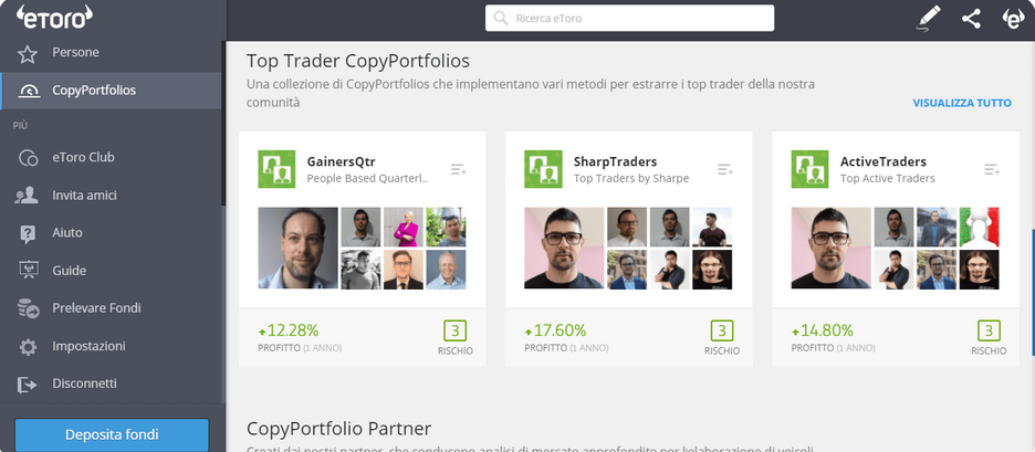 Una delle caratteristiche più note di eToro è il social trading, che consente di osservare e copiare le strategie di altri investitori attraverso strumenti come CopyTrader e portafogli tematici.
