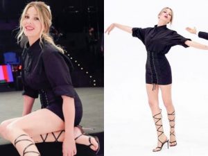 Alessia Marcuzzi sembra aver riscoperto la passione per i look total black a Le Iene e da diverse settimane punta sempre sul nero per le dirette dagli studi milanesi. Questa volta, però, è riuscita a dare il meglio di lei: ha abbinato una minigonna a vita altissima con l’abbottonatura frontale in stile corsetto a una camicia nera e leggermente over portata abbottonata fino al collo, tutto firmato Dolce&Gabbana. A completare il tutto, un paio di adorabili sandali alla schiava di Gianvito Rossi, per la precisione i Ribbon Gladiator con tacco a spillo, punta quadrata e lacci annodati intorno al polpaccio. Per quanto riguarda l’acconciatura, ha detto addio ai capelli sciolti, preferendo una pony tail leggermente spettinata.