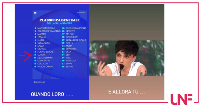 Per qualche istante i fan di Ultimo hanno temuto il peggio, visti i precedenti. Ma in realtà a quanto pare, il cantante romano questa volta sta prendendo la sua partecipazione a Sanremo con grande ironia e con una ritrovata serenità di cui aveva già parlato in molte interviste. La sua Alba non è piaciuta molto ai giornalisti: per la sala stampa il brano che Ultimo ha portato a Sanremo 2023 merita solo il decimo posto. Va detto, che la prima interpretazione di Niccolò sul palco dell’Ariston, ha un po’ deluso anche il pubblico a casa che forse, visti i pronostici si aspettava anche molto di più. Ma aspettiamo un secondo ascolto prima di dare un parere definitivo su questa canzone. Ma torniamo a Ultimo, dicevamo che questa mattina il cantante ha fatto prendere un coccolone ai suoi fan che si aspettavano una polemica servita via social…E invece non è successo. Ultimo ha pubblicato infatti una storia, con la classifica, evidenziando la sua decima posizione. Ha scritto: “Quando loro…” sottolineando il decimo posto dato dalla votazione della sala stampa. La seconda storia poi, una immagine della famosa conferenza stampa quando litigò con alcuni dei giornalisti presenti…Una immagine che faceva presagire il peggio e invece…Ultimo ha poi postato una storia dove spiegava che stava semplicemente scherzando!