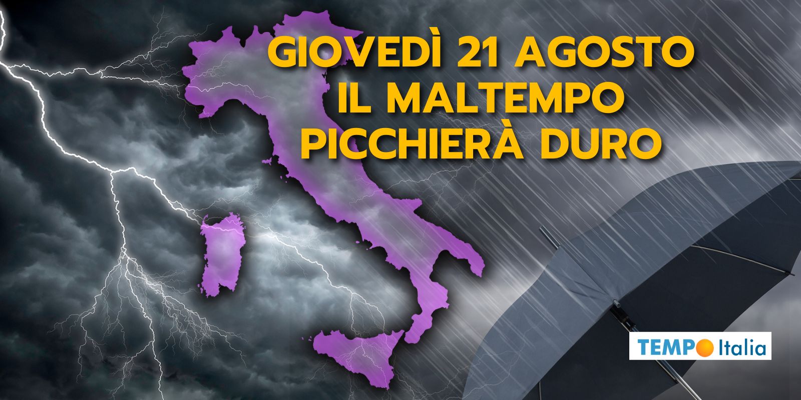 Meteo Giovedì 21 agosto: il maltempo picchierà ancora duro, tutti i dettagli