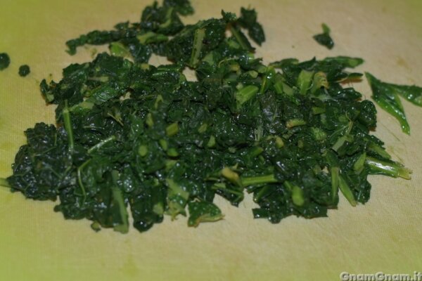 Per la ricetta ho semplicemente frullato del cavolo nero cotto che mi è servito per legare la pasta, a questo ho aggiunto mozzarella e parmigiano, e poi via in teglia. Io l’ho cotta in friggitrice ad aria, ma vi darò anche le indicazioni per cuocerla nel forno normale.
