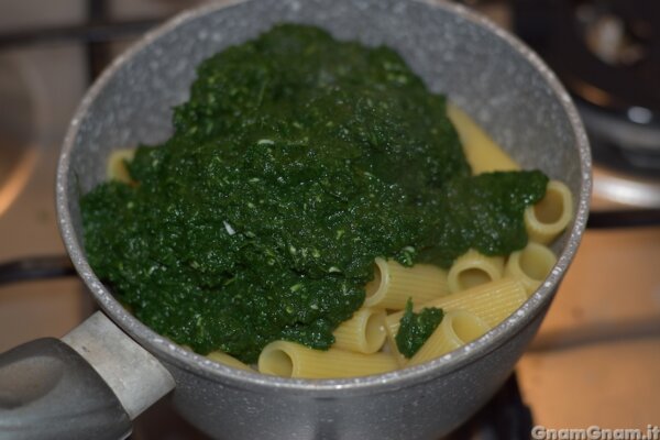 Cuocete la pasta in abbondante acqua salata e scolatela al dente. Volendo potete cuocerla nell’acqua di cottura del cavolo nero.