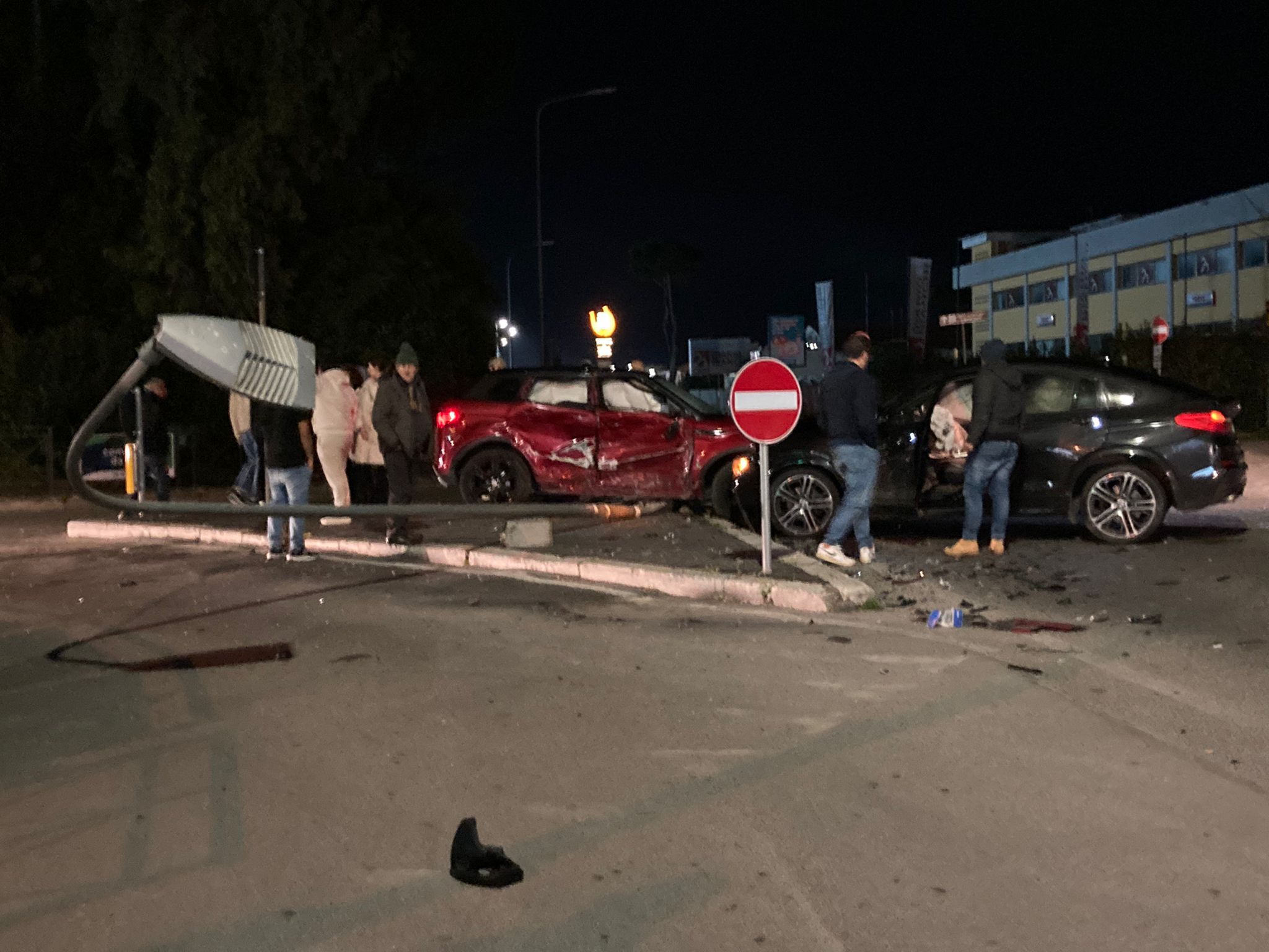 Pomezia, tremendo incidente sulla via del Mare: due feriti, abbattuto palo della luce (FOTO)