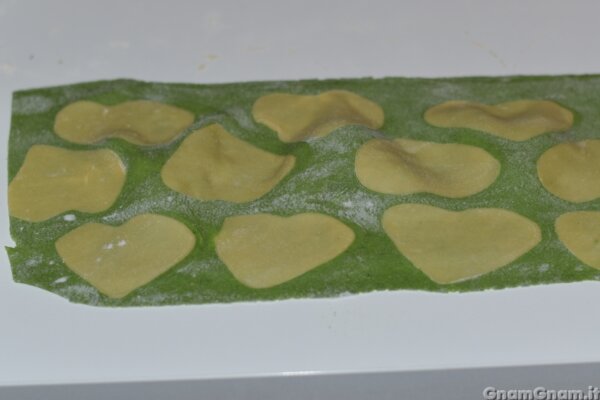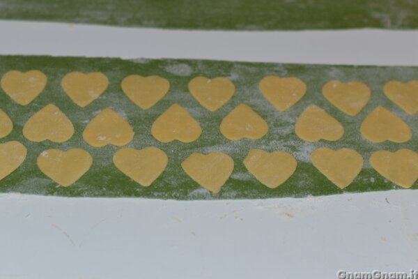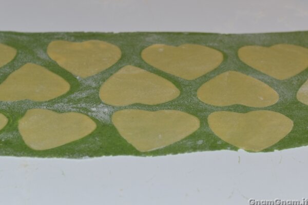 Fate lo stesso con quella bianca e ricavate dei cuori. Come detto in descrizione, vi ricordo che se volete che si notino sui ravioli, dovrete farli molto più piccoli.