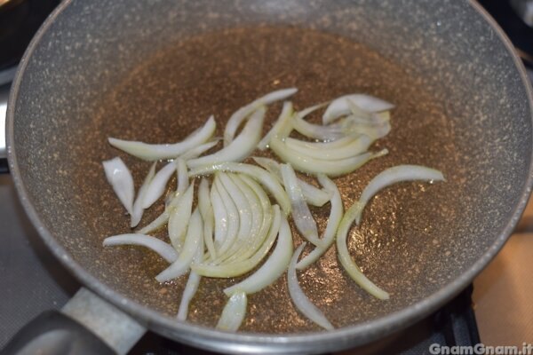 Rosolate la cipolla a listarelle in una padella con olio caldo.