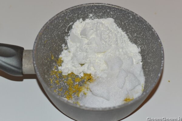 In un pentolino mettete zucchero, maizena e buccia di limone.