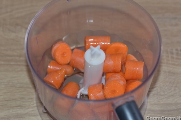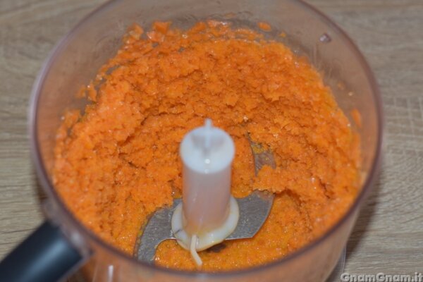 Sciacquate le carote, eliminate l’estremità e tagliatele a pezzi. Mettetele in un mixer insieme all’olio