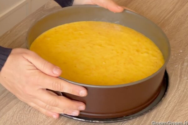 e verste in una tortiera del diametro di 24 cm unta con olio o rivestita di carta da forno.