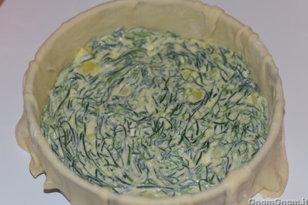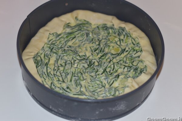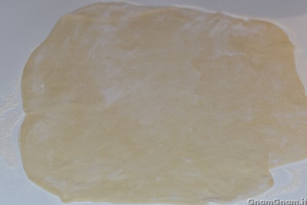 Eliminate l’impasto in eccesso e ripiegate leggermente i bordi.