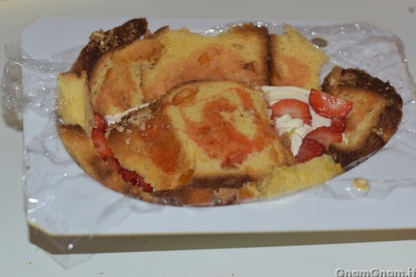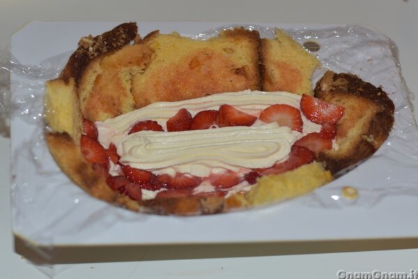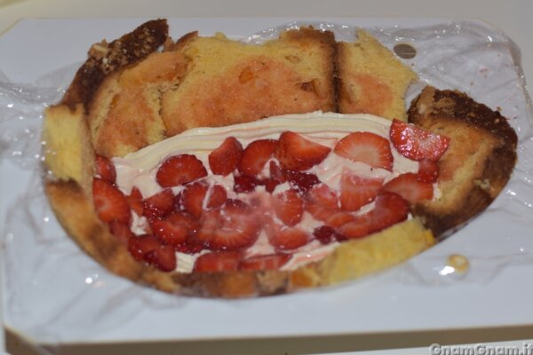Coprite con la colomba e bagnatela con il succo di fragole.