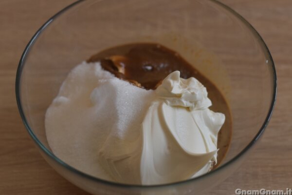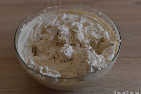 Nel frattempo lavorate il mascarpone con lo zucchero ed il caffè.