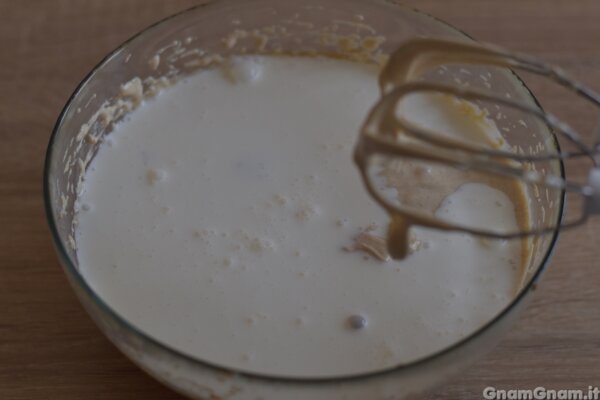 ed incorporando del tutto prima di aggiungere l’uovo seguente.